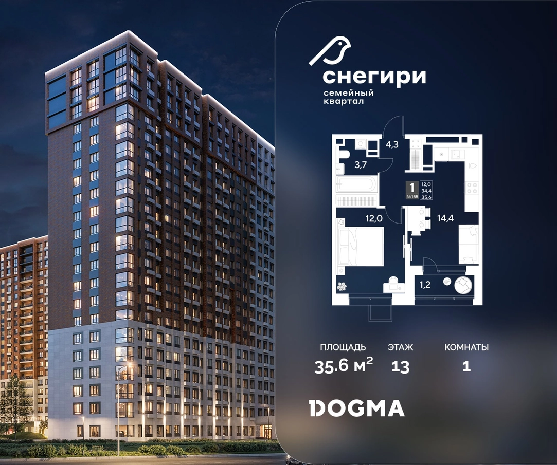 В продаже 1-комнатная квартира от застройщика DOGMA! ЖК «Снегири», г. Омск, Литер 1 Срок сдачи: (4 кв. 2027, общей площадью 35.6 кв.м., на 13 этаже.) Район для счастливой жизни«Снегири» — это семейный квартал, который дарит радость простых вещей: тепло дома, безопасность и живую природу рядом.