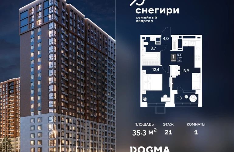 В продаже 1-комнатная квартира от застройщика DOGMA! ЖК «Снегири», г. Омск, Литер 1 Срок сдачи: (4 кв. 2027, общей площадью 35.3 кв.м., на 21 этаже.) Район для счастливой жизни«Снегири» — это семейный квартал, который дарит радость простых вещей: тепло дома, безопасность и живую природу рядом.