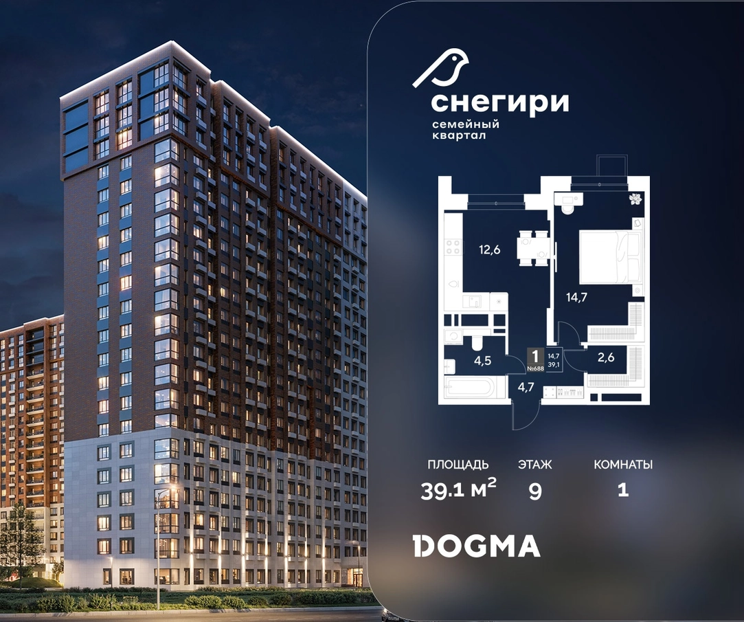 В продаже 1-комнатная квартира от застройщика DOGMA! ЖК «Снегири», г. Омск, Литер 1 Срок сдачи: (4 кв. 2027, общей площадью 39.1 кв.м., на 9 этаже.) Район для счастливой жизни«Снегири» — это семейный квартал, который дарит радость простых вещей: тепло дома, безопасность и живую природу рядом.