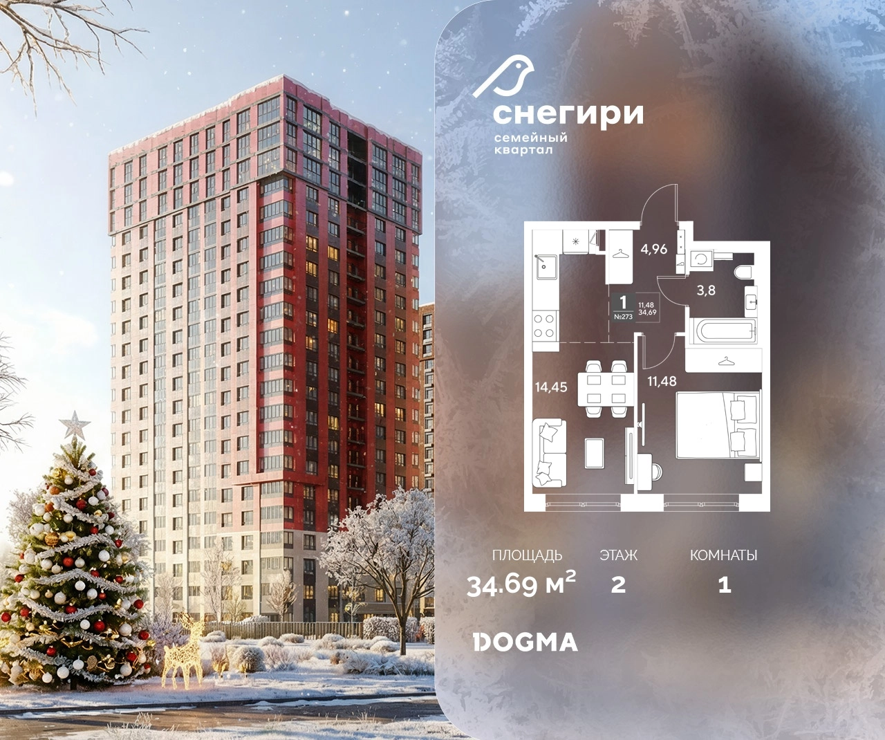 В продаже 1-комнатная квартира от застройщика DOGMA! ЖК «Снегири», г. Омск, Литер 3 Срок сдачи: (3 кв. 2029, общей площадью 34.69 кв.м., на 2 этаже.) Район для счастливой жизни«Снегири» — это семейный квартал, который дарит радость простых вещей: тепло дома, безопасность и живую природу рядом.