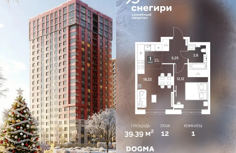 В продаже 1-комнатная квартира от застройщика DOGMA! ЖК «Снегири», г. Омск, Литер 3 Срок сдачи: (3 кв. 2029, общей площадью 39.39 кв.м., на 12 этаже.) Район для счастливой жизни«Снегири» — это семейный квартал, который дарит радость простых вещей: тепло дома, безопасность и живую природу рядом.